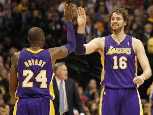 大加索尔在那年的七场总决赛,场均出场41.8分钟,可以拿到18.6分11.6板3.7助2.6封盖。科比场均出场41.3分钟,可以拿到28.6分8板3.9助2.1抢断。