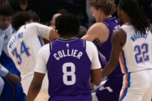 GIF-肯里奇·威廉姆斯突然夹击生生从马尔卡宁手中将球抢走