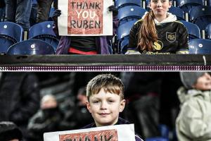 在伯恩利对阵曼联的比赛中,一位小球迷高举标语向阿莫林致谢:“THANK YOU, RUBEN”。