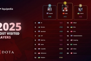 体育资讯1月15日讯 Liquipedia公布了2025年度其网站中被浏览次数最多的选手页面排行榜,ame第一。