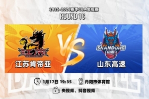 1月17日19:35,2025-26赛季CBA常规赛第十六轮,江苏肯帝亚将回归主场,迎来丹阳赛区的主场收官战,迎战山东高速,此战之后球队将转场至南通赛区。