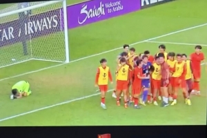 体育资讯1月17日讯 中国U23男足点球大战淘汰乌兹别克斯坦U23男足晋级亚洲杯四强,中国男足中后卫蒋光太晒照庆祝胜利。