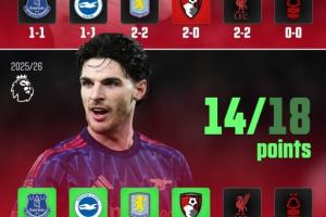 而上赛季,阿森纳在这相同的六场比赛里全部丢分,只取得了5平1负,丢掉了13个积分。