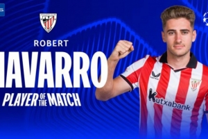 此役罗贝托·纳瓦罗为毕尔巴鄂竞技踢满全场,打进1球,助攻2次,他当选欧冠官方本场比赛最佳球员。