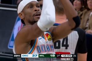 手感不佳!谢泼德上半场6中2得到5分1板2助2帽 三分3中1