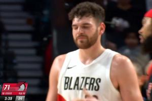 第三节3分39秒,开拓者换下克林根,但没有按照上半场的轮换派上杨瀚森,上了小阵容。