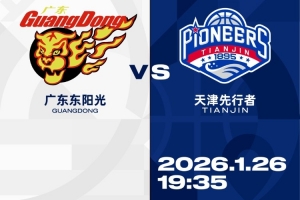 1月26日,2025-2026赛季CBA常规赛第20轮,天津先行者客场对阵广东东阳光,本场次为CBA潜力赛场次,天津5、抖音平台将对本场比赛进行直播。面对目前排名联赛第二、正处三连胜势头中的强敌,先行者将再度迎来硬仗考验,期待队伍做好充分准备、全力应战。
