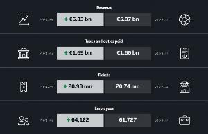2、2024/25赛季是德甲俱乐部首次实现总收入超过50亿欧元,比2023/24赛季的纪录增长了3.208亿欧元,增幅达6.7%;