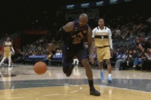 GIF-詹姆斯抢断但运脚上出界 人冲到球员通道了