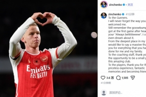 体育资讯2月2日讯 阿森纳后卫津琴科转会加盟阿贾克斯,乌克兰人在社交媒体上对老东家表示了感谢。