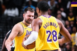 赛后,湖人官方少初本场赢球海报,东契奇和八村塁登上封面。