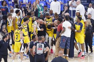 “你为那座城市付出了一切,当然,我足够年长,还记得他们上次进总决赛是什么时候。当时他们对阵奥尼尔和科比。所以看到雷吉·米勒一路支持着你们,你在东部决赛绝杀后在花园球馆做出锁喉的经典庆祝动作,我认为那超级酷。”