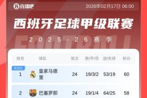 体育资讯02月17日讯 西甲第24轮,巴萨1-2赫罗纳。