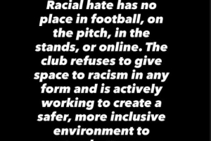 尤文官方也坚定地站在了球员这一边。俱乐部在社交媒体发布了如下声明:“种族仇恨在足球场、看台或网络空间都没有立足之地。俱乐部拒绝为任何形式的种族主义提供空间,并正致力于创造一个更安全、更包容的环境,为球迷和球员打造更好的体育事业。永不再犯。”