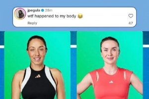 不过据博主“克母鸡”消息,本场比赛赛前出现了一则趣事,WTA在发布决赛海报时不小心把佩古拉衣服的白边P掉,导致佩古拉的身材看上去十分面条,看上去有些诡异…