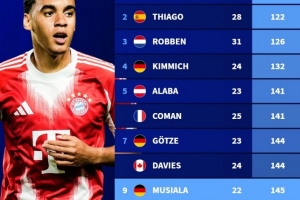 体育资讯2月25日讯 在拜仁3-2击败法兰克福之后,穆西亚拉达成生涯100场德甲胜利里程碑,用时145场比赛能够位列历史第9少,以下为最快达成德甲百胜场次榜: