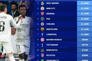 体育资讯2月26日讯 本赛季欧冠16强全部产生,德转也盘点了16强球队身价榜,具体如下: