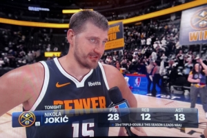 体育资讯3月6日讯 NBA常规赛,掘金120-113击败湖人。赛后约基奇接受了采访。