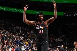 恩比德近期状态不俗,过去5场,场均砍下30.6分8.8篮板3.4助攻1.4抢断0.6盖帽,投篮命中率47.6%。