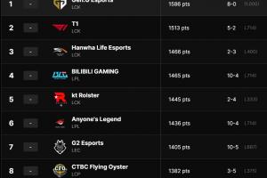 GEN.G/T1/HLE位列前三,LPL冠军BLG第四,AL第六,LPL亚军JDG仅排第九,TES第十。